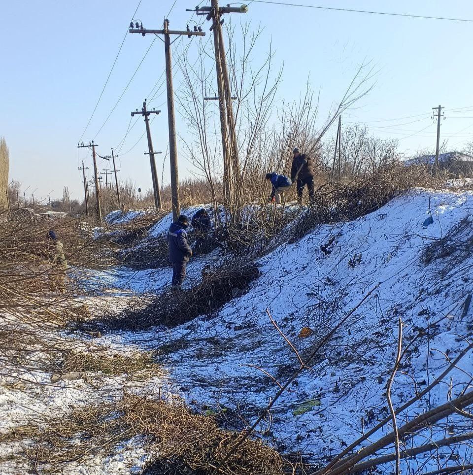 В сети также появились фотографии, демонстрирующие так называемые "уборочные работы" в городе. На снимках видно, как работники ЖКХ посыпают песком остановки общественного транспорта и занимаются спиливанием деревьев.