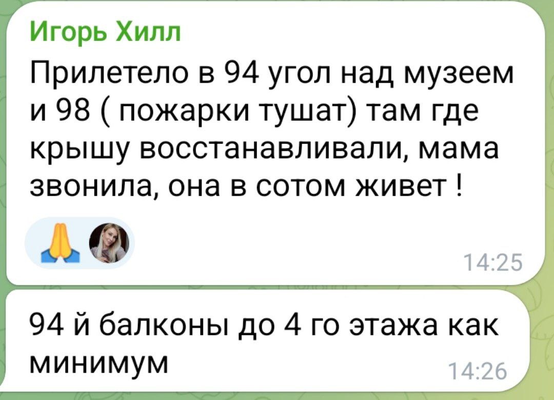 По данным местных, около 13:00 потерпел удар дом №94 на проспекте Победы (бывший проспект Ленина). В результате взрыва снесло угол дома, а также повреждены соседние дома.