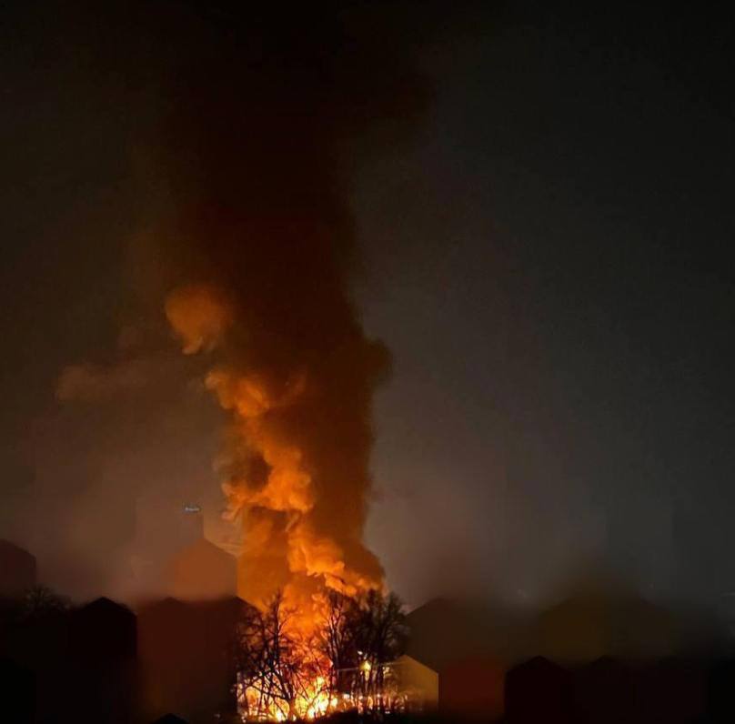 В соцсетях появились сообщения, что один из беспилотников попал в гостинично-ресторанный комплекс, что привело к масштабному пожару. Жители и очевидцы публикуют фото и видео с последствиями атаки, на которых видно большой огонь и разрушения.