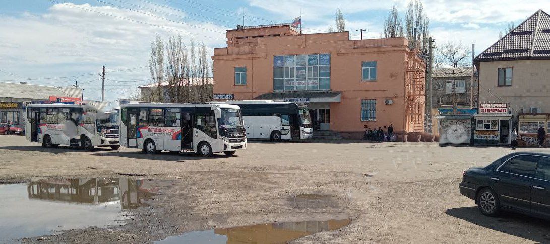 На снимках — автовокзал с несколькими автобусами, но без обычного движения и суеты. Лишь несколько жителей сидят на скамейках, будто в ожидании чего-то, что давно не приходит, передает Час Пик.