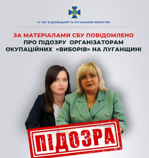 Среди подозреваемых - две женщины, которые представляли так называемую "избирательную комиссию ЛНР". Этот квазиорган был создан оккупантами для координации и реализации фейковых "референдумов" и "выборов" на захваченных территориях Луганской области. Он функционирует под прямым контролем Центральной избирательной комиссии РФ и администрации президента России. Одно из этих лиц занимало должность "секретаря избирательной комиссии" и участвовало в проведении незаконных процессов голосования.
