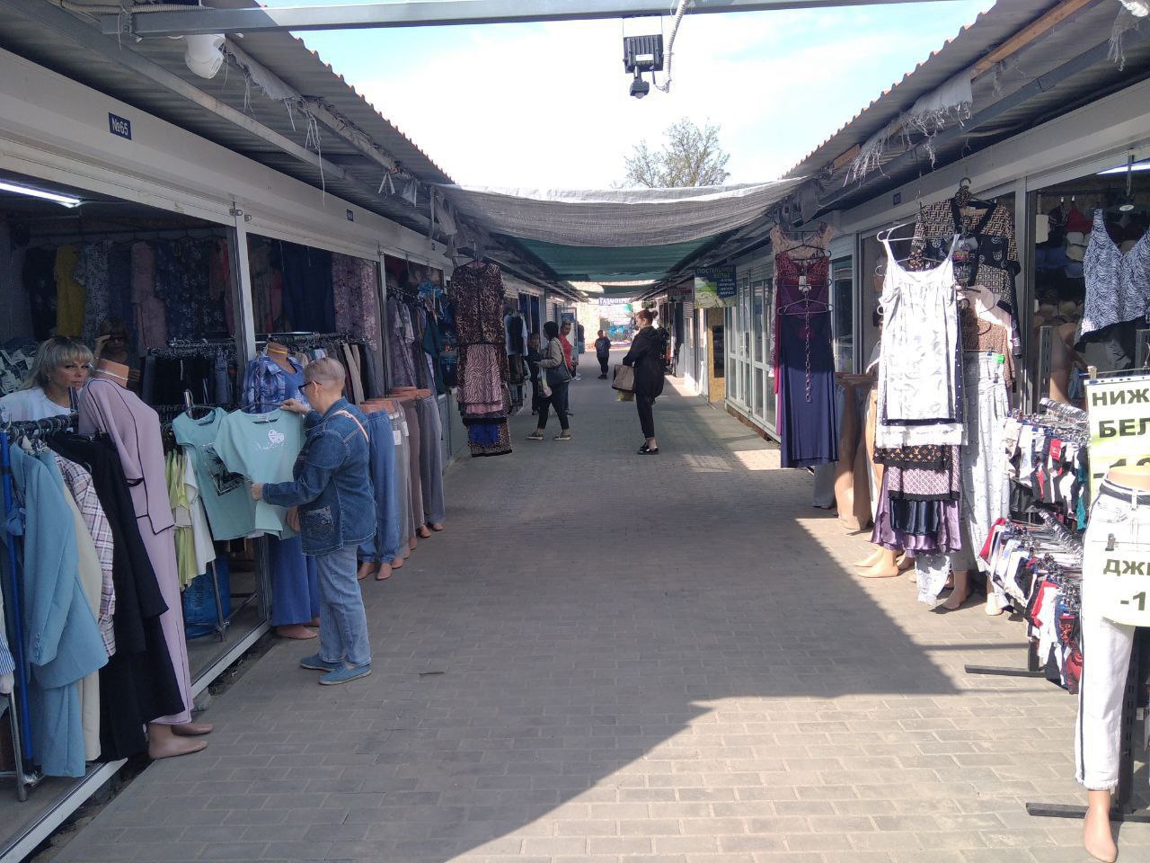 На "вещевых" палатках видно, что покупателей немного, на снимке можно заметить всего нескольких людей.