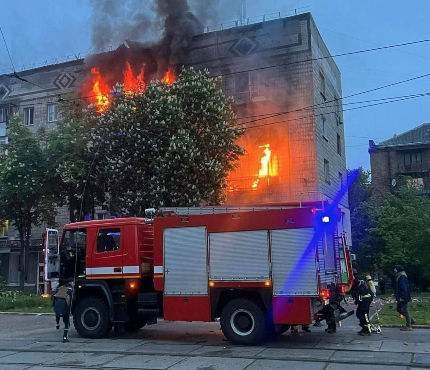 В Шевченковском районе обломок БПЛА попал в верхние этажи пятиэтажного жилого дома. Погибло двое человек. По состоянию на утро 7 мая, количество пострадавших возросло до 8 человек. Четверо из них госпитализированы.