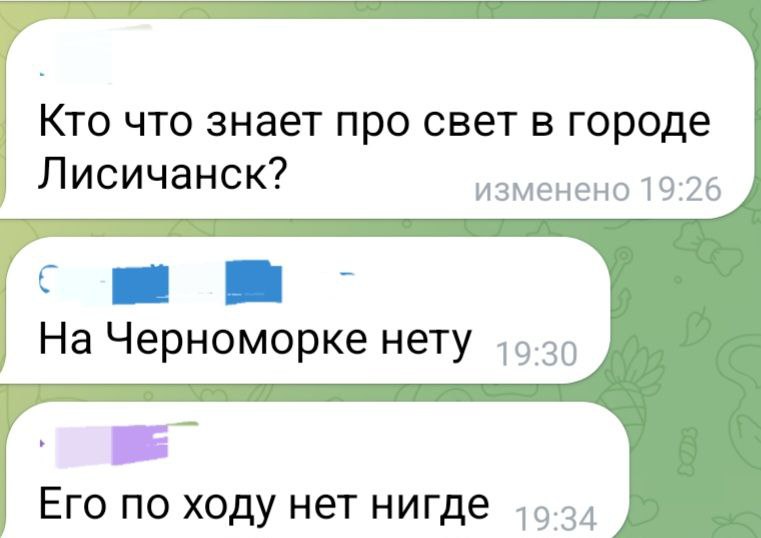 "Кто знает проо свет в городе Лисичанск?" — с таким вопросом обращаются пользователи, получая массовые ответы из разных районов города: