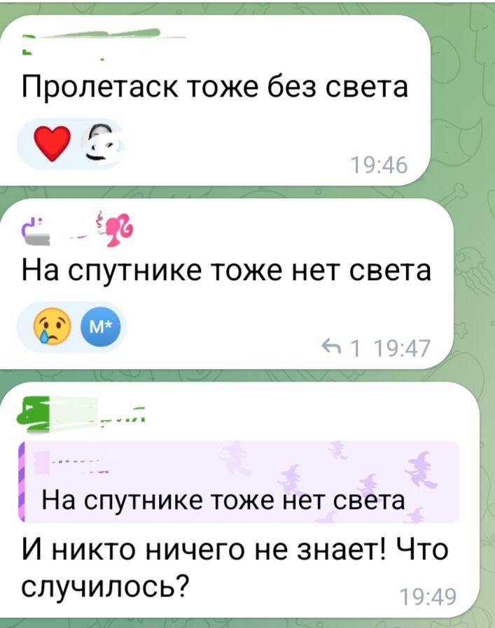 Местные жители активно обсуждают ситуацию в онлайн-чатах, спрашивая друг друга о причинах исчезновения электроснабжения, передает Час Пик.
