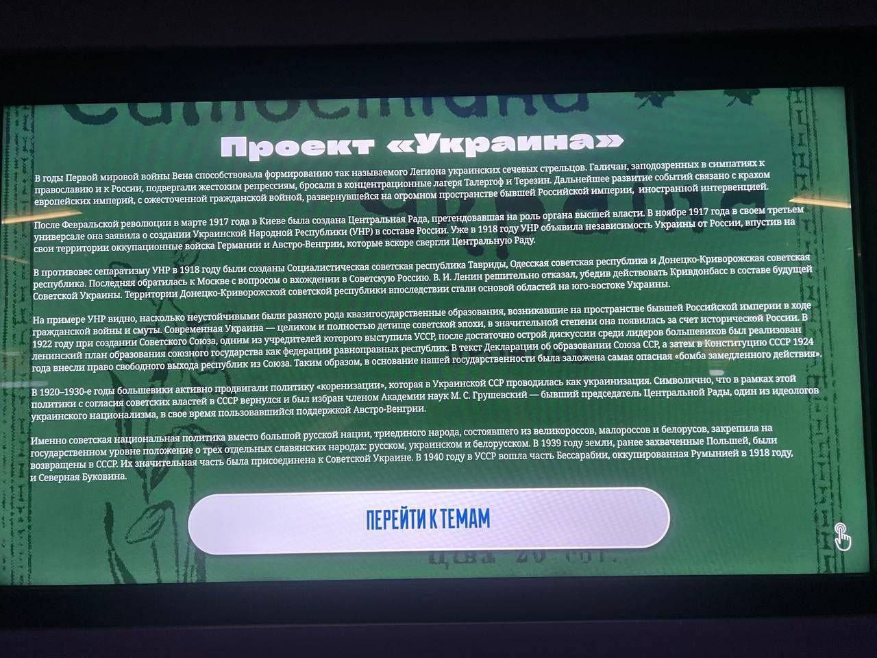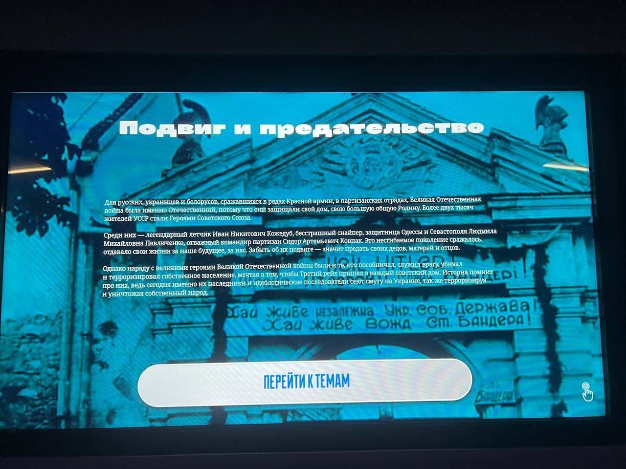 Одним из таких объектов стал музей с выставкой под громким названием "подвиг и предательство". По словам очевидцев, содержание этой выставки - типичный образец российской пропаганды, где правду подменяют фальсификациями, а история подается в искаженном виде. Школьникам демонстрируют материалы, содержащие ложные утверждения о событиях Украинской Народной Республики, вымышленные сюжеты об «угрозе суверенитету России» со стороны Украины и нарративы, которые оправдывают вторжение в 2022 году.
