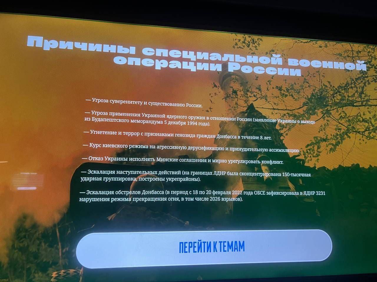 Особенно абсурдным является тот факт, что в одном из слайдов Украину обвиняют в намерениях использовать ядерное оружие против РФ. В качестве доказательства этому, организаторы выставки ссылаются на якобы заявление о выходе Украины из Будапештского меморандума. Впрочем, в реальности никакого подобного заявления не принималось ни Верховной Радой, ни каким-либо другим уполномоченным органом. Более того - упоминание о Будапештском меморандуме выглядит как особенно циничная манипуляция: именно Россия, которая была гарантом территориальной целостности Украины согласно этому документу, грубо его нарушила, начав агрессию в 2014 году и полномасштабное вторжение в 2022-м.