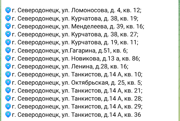 На этот раз пророссийские ресурсы опубликовали новый список квартир в Северодонецке, признанных "бесхозяйными" - то есть якобы покинутыми и не принадлежащими никому. Формально такая процедура открывает путь к передаче жилья новым «временным жильцам» или его перепрофилированию под нужды оккупационной администрации.