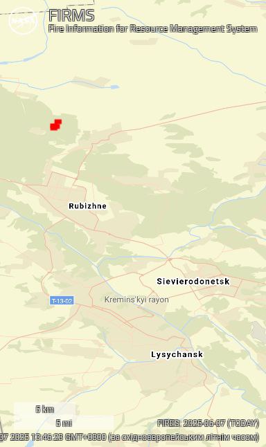 Снимки NASA FIRMS также подтверждают, что возгорания имеют место возле Пшеничного и Варваровки.