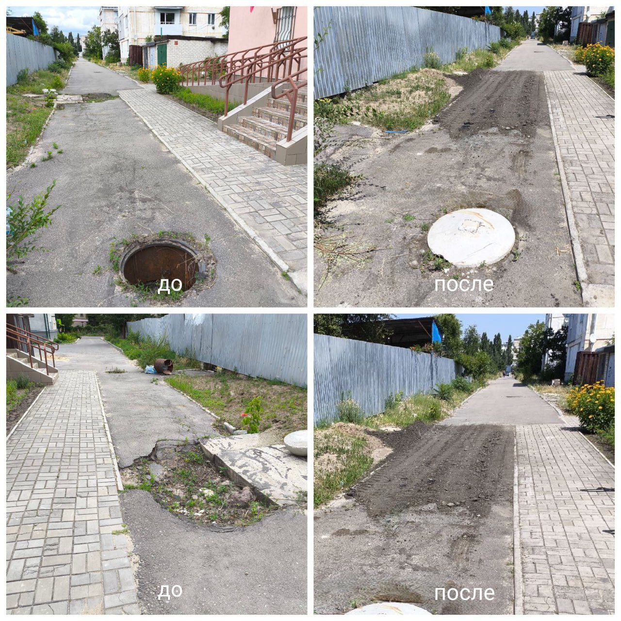 Как отмечается, местная жительница и руководитель центра "Возрождение" обратилась в администрацию с просьбой ликвидировать опасность — закрыть горловину люка и залатать яму возле тротуара.