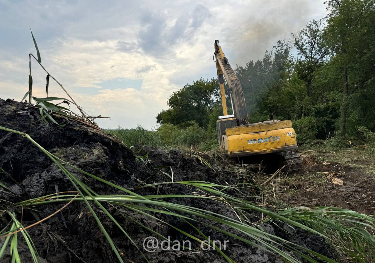 В частности, в Макеевском округе продолжаются работы по очистке реки Крынка от камыша и ила — реки, от которой зависит водоснабжение многих городов Донбасса. Работающий на месте машинист экскаватора рассказал, что проводит на участке утром и до позднего вечера.