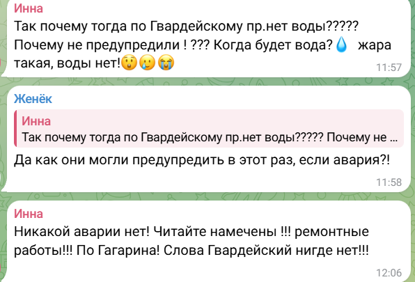 "И когда она будет? Вы достали со своими отключениями неожиданными и без воды сидеть опять не пойми сколько времени",