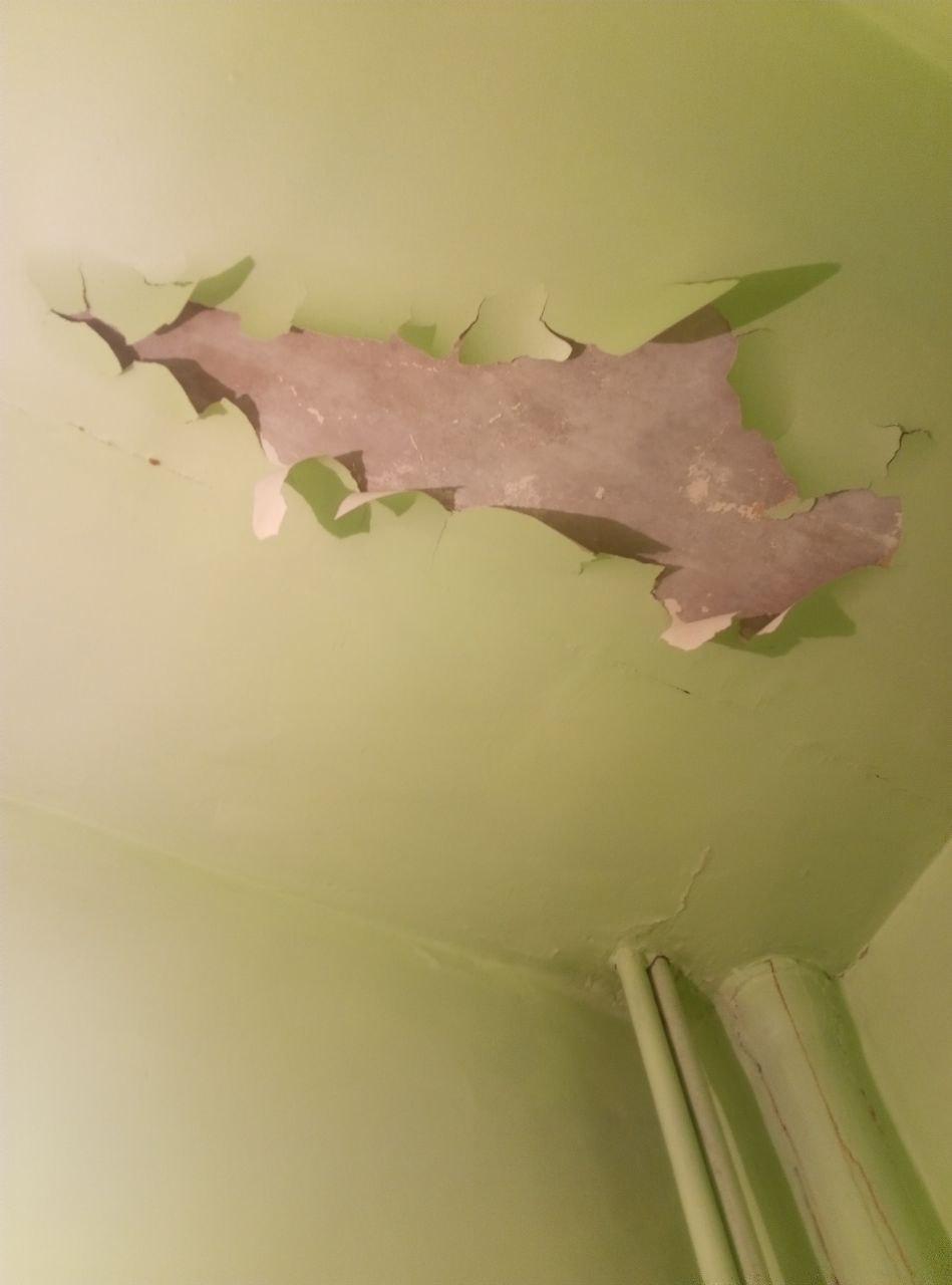 Помимо нашествия тараканов, очевидцы показывают облупленную краску на стенах и дверях, ржавые трубы, потолки с трещинами. На фотографиях и видео создается впечатление, что ремонт здесь не делали минимум десять лет.