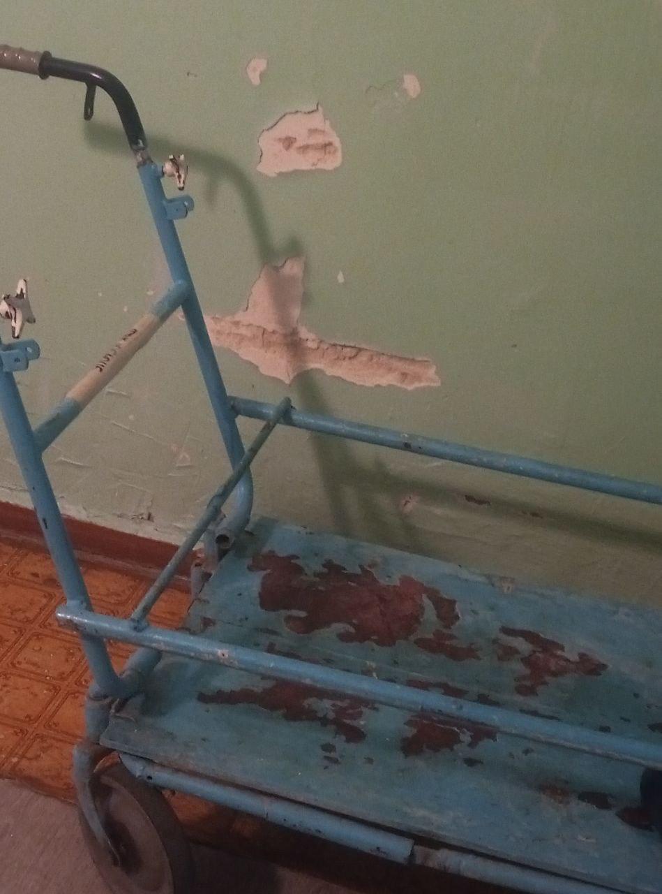 На видео видно, что больничные кровати представляют собой старые металлические сетки с рваными, местами заплесневелыми и пропитанными неприятным запахом матрасами.