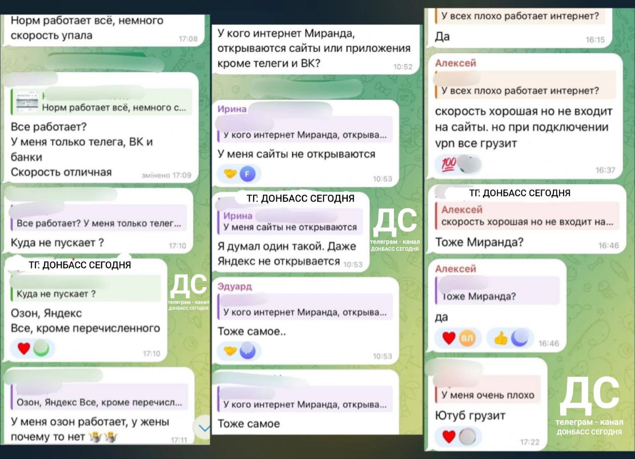 Ситуация в Лисичанске и Рубежном еще хуже. Интернет либо полностью отсутствует, либо работает на минимальной скорости. Просмотр видео на YouTube или "ВКонтакте" возможен только в самом низком качестве. В то же время, относительно стабильно функционируют российские маркетплейсы и сервисы банковских услуг. Telegram работает, но с постоянными перебоями.