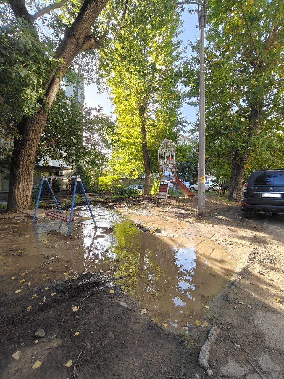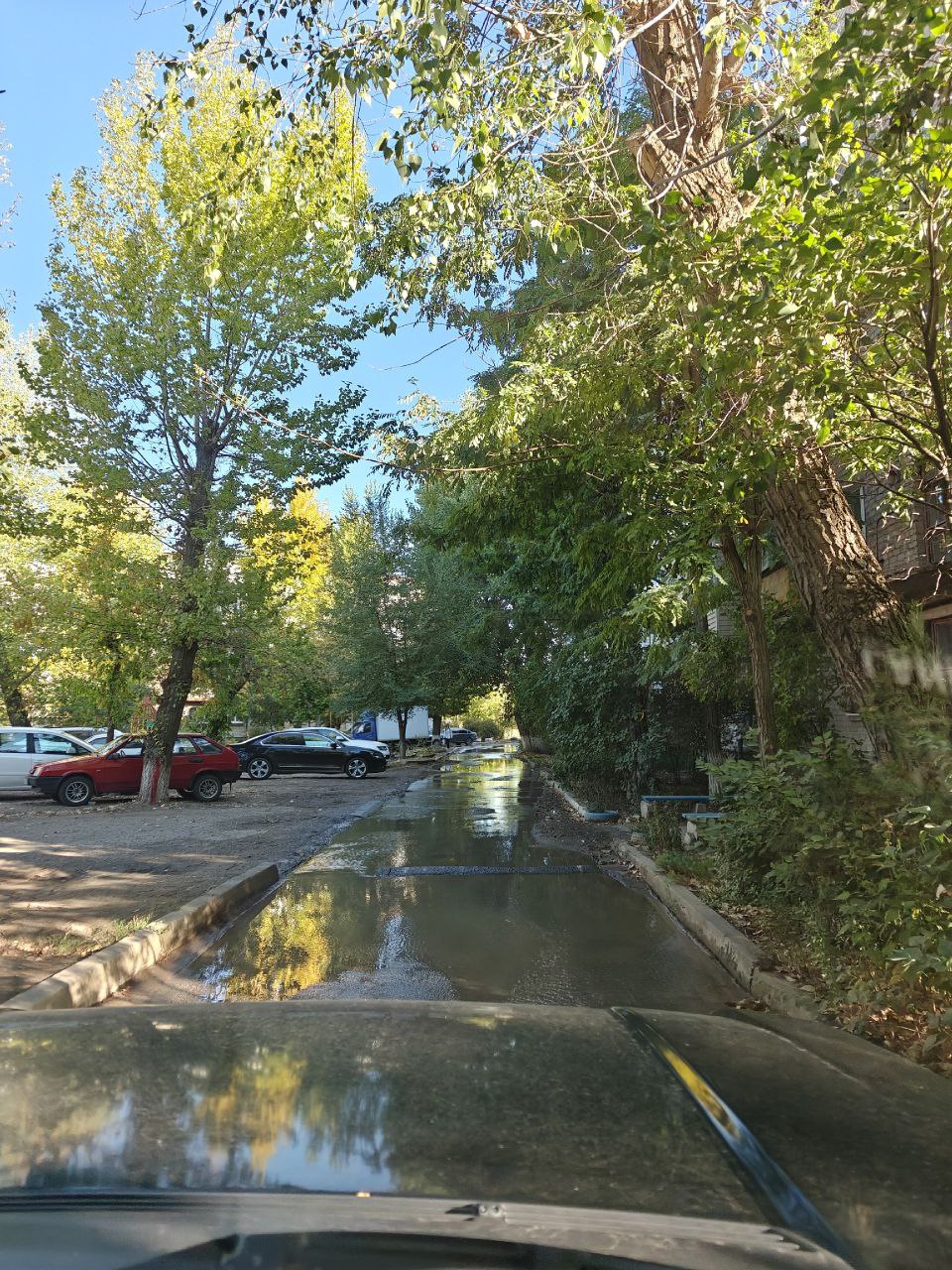 У дома № 26а из-под земли бьет мощный фонтан, который местные жители называют "настоящим гейзером". Дворы постоянно залиты, а фундаменты многоэтажек подмывают, сообщает Час Пик.