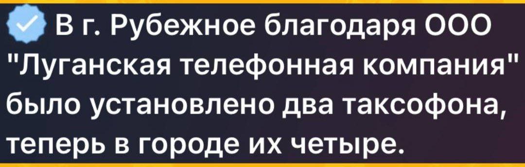 На фоне тотального разрушения инфраструктуры и отсутствия качественной связи во временно оккупированном Рубежном, оккупационные власти нашли повод для гордости. В сети появились сообщения о том, что в городе установлено еще два таксофона.