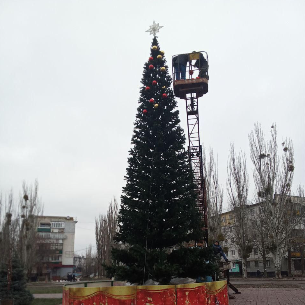 В оккупированном Лисичанске Луганской области появилась новогодняя елка. Однако вместе с новогодним деревом новогоднее настроение не появилось.