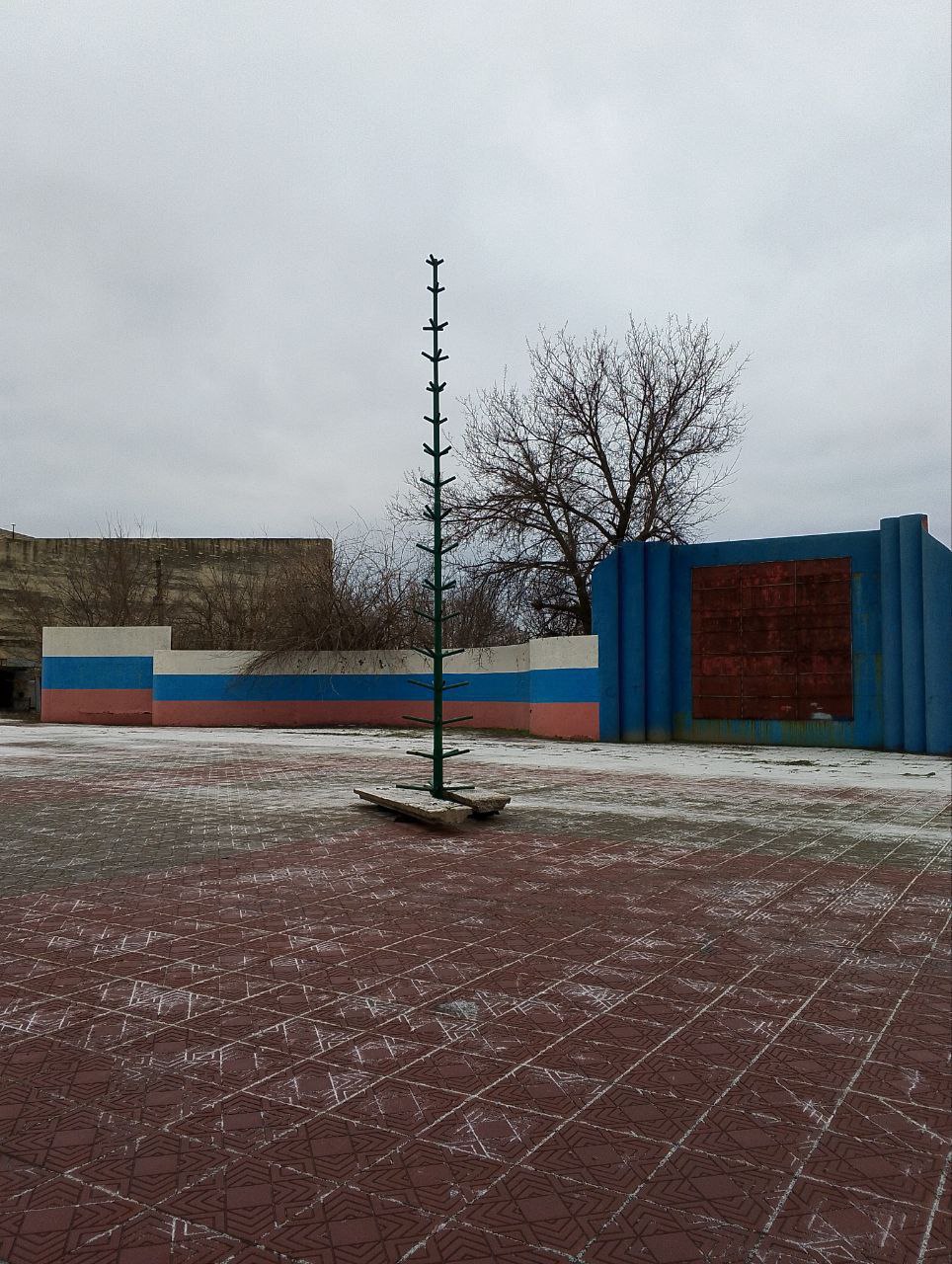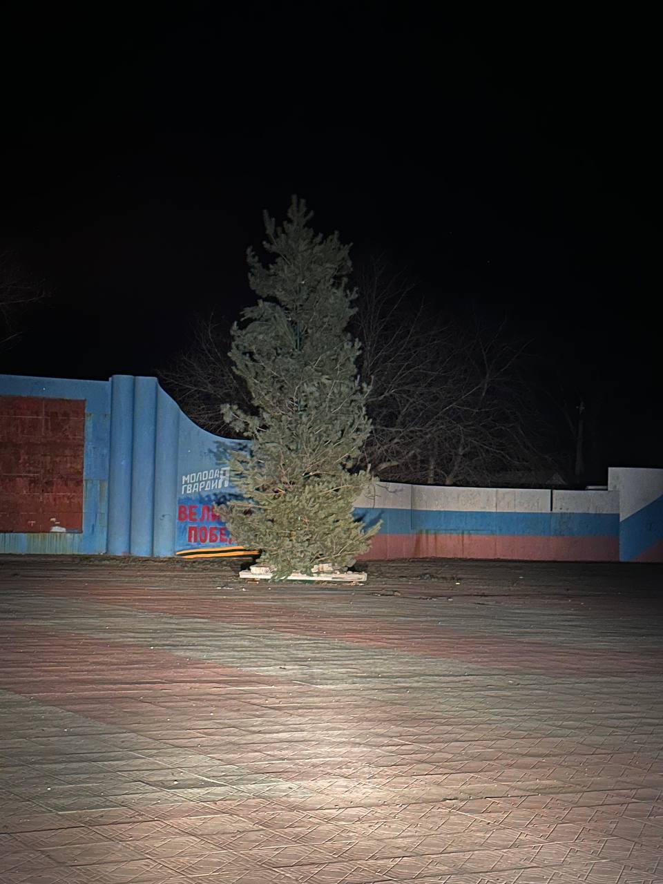 В 2025 году новогодняя елка, которую установили в центре Лисичанска, всем своим видом соответствует общей ситуации в городе и регионе.