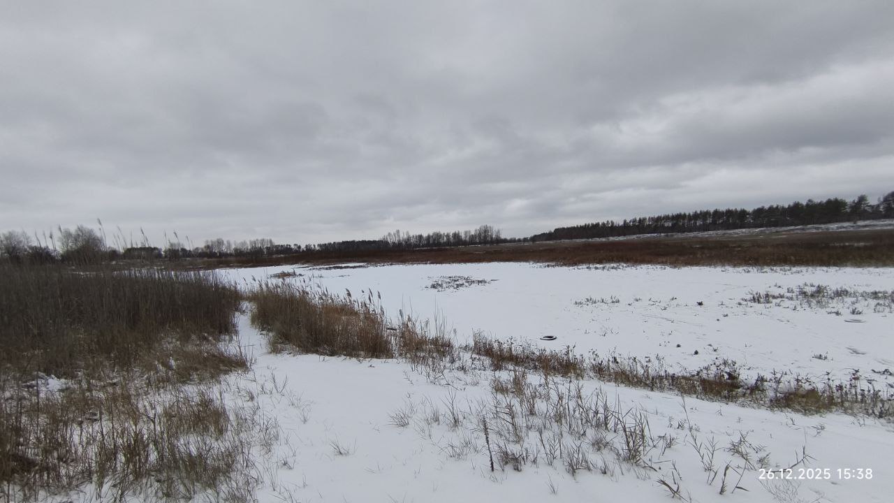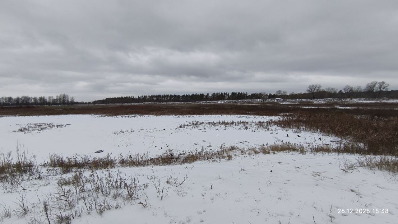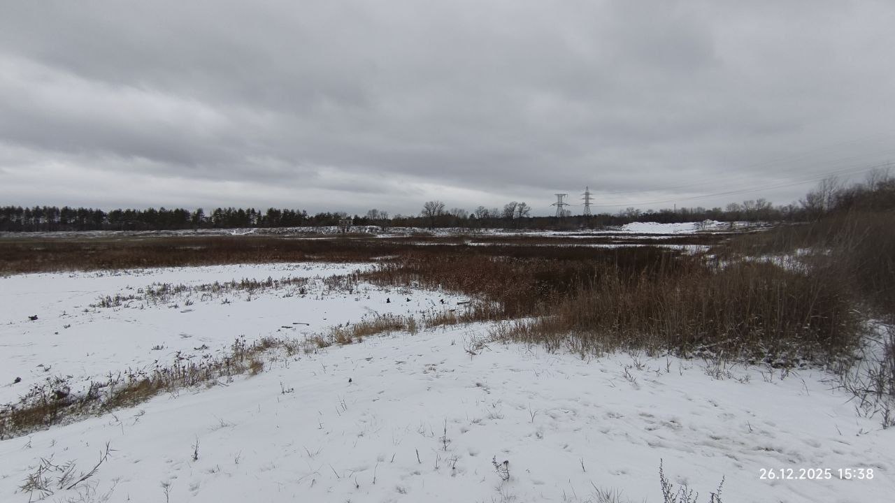 Фото были сделаны 26 декабря 2025 года. Как можно заметить, воды нет вообще. Теперь даже сложно сказать, что раньше здесь был водоем с прекрасными лебедями. Никто здесь больше не рыбачит и не проводит досуг. Озеро превратилось в небольшой овраг.