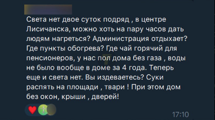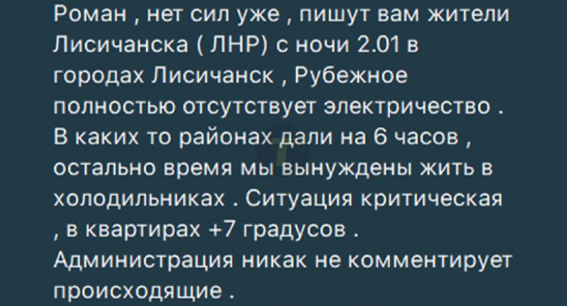 В оккупированном Лисичанске после Нового года возникли серьезные перебои с электроснабжением. Проблемы со светом потянули и проблемы с теплом в квартирах.