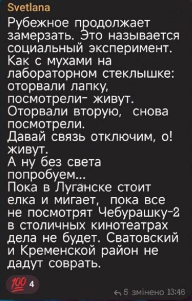В оккупированном Рубежном Луганской области отопление отсутствует. Люди замерзают в домах и подозревают, что над ними проводят эксперимент по выживаемости.