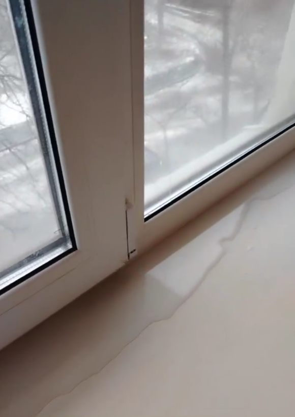 "К кому обращаться? Поставили новые окна, но в зале из-под откосов течет вода. Шоссе строителей, 5А", - говорится в подписи к фото.