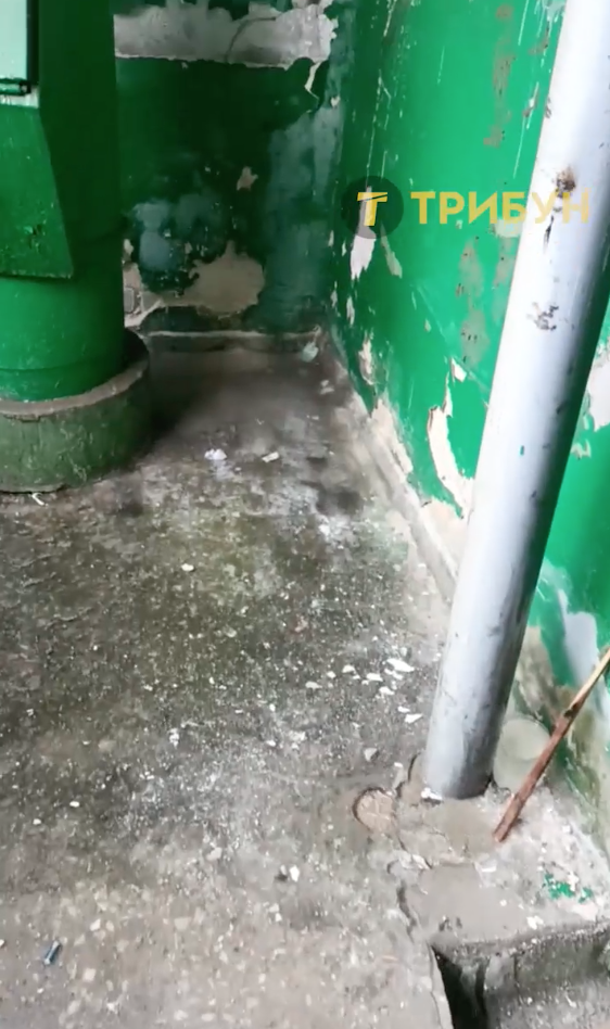 Также в сети появились кадры одного из подъездов. Вода стекает едва ли не до последнего этажа.