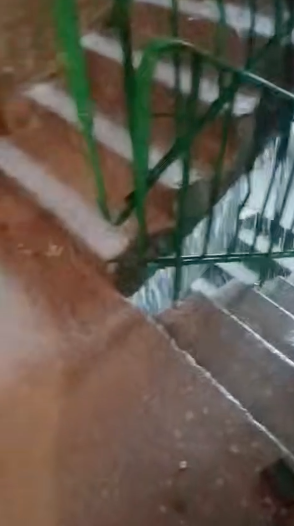 Выходя их квартиры, теперь можно нарваться на ливень. В подъезде одного из домов Северодонецка грандиозный потоп. Очевидно, что крышы в доме нет вообще. Поэтому вода льется как из ведра. Мощные потоки стекают по этажам, льются рядом с электрическим счетчиком.