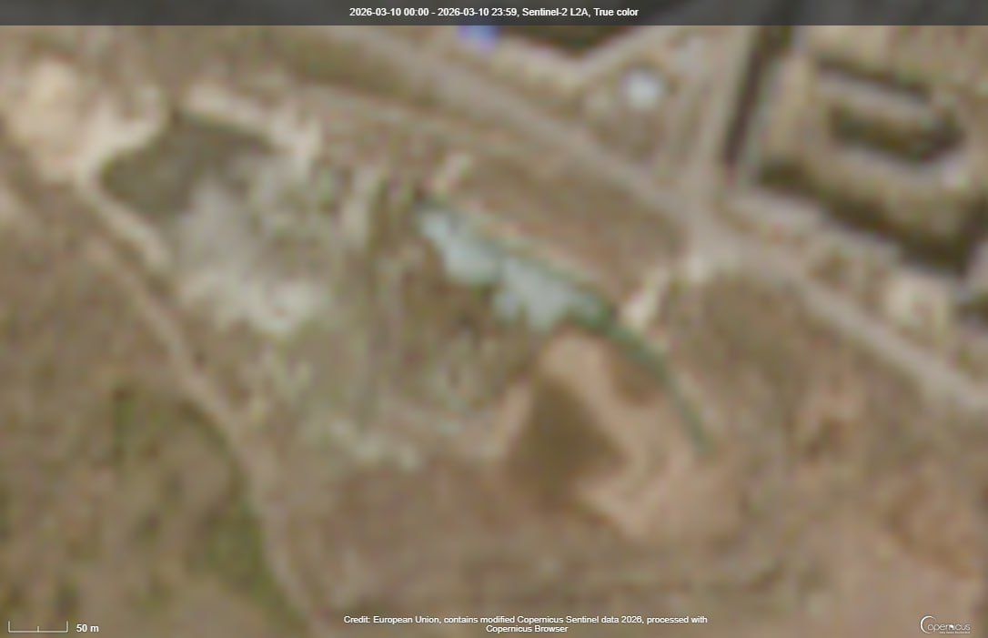 На спутниковом снимке видно, что площадь, которую сейчас занимает озеро, совсем маленькая. Время, когда здесь обитали прекрасные лебеди, после оккупации завершилось. Вероятно, в летнее время высохнут и эти остатки воды.