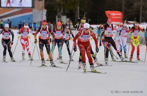 Вчера. Рупольдинг. Старт женской эстафеты. Фото: biathlonworld.com Масс-старт в Оберхофе Валя Семеренко провела в желтой майке главного фаворита Кубка мира, а в Кубке наций женская сборная Украины продолжает удерживать первую позицию.