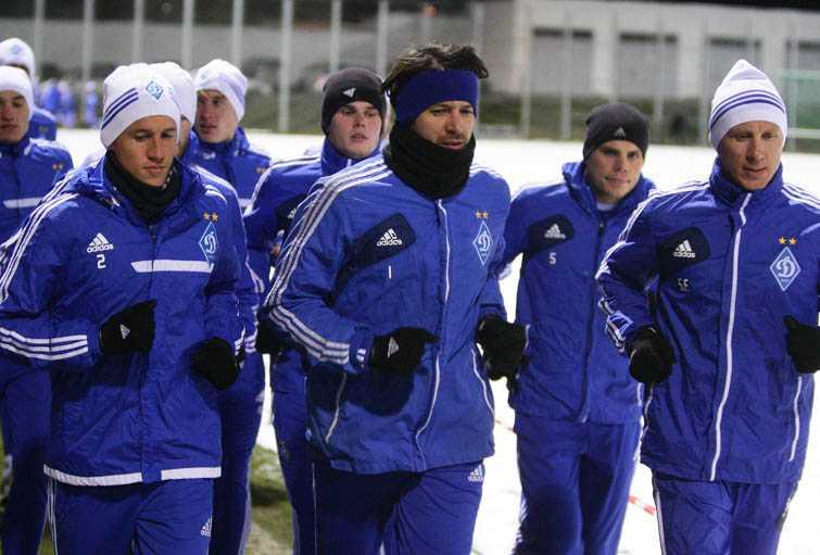 Конча-Заспа. Тренировка «Динамо». Капитан команды Александр ШОВКОВСКИЙ ведет за собой партнеров на первой в этом году пробежке. Фото: fcdynamo.kiev.ua