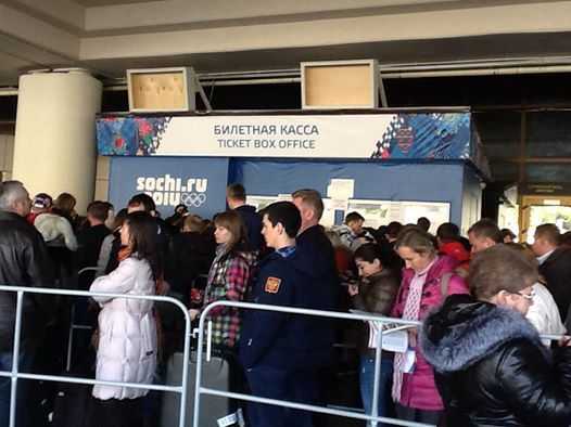 Турист из Санкт-Петербурга: «Мы стоим два с половиной часа уже за покупкой билетов. На кёрлинг хотим купить билеты. Видите, что творится? Наша страна, по-моему, не готова к продаже огромного количества билетов. Просто стыдно! Люди стоят, не только русские, но и иностранцы, мне кажется, что это совершенно неправильно. Одно окно, где продают по одному билету, наверное, в 10 минут».