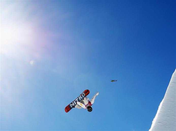 - Сноуборд – сноуборд-слоупстайл. Спортсмены выступают на склоне, имеющем различного рода препятствия: рейлы, квотерпайпы, трамплины. Технические характеристики трассы прописаны правилами FIS.
