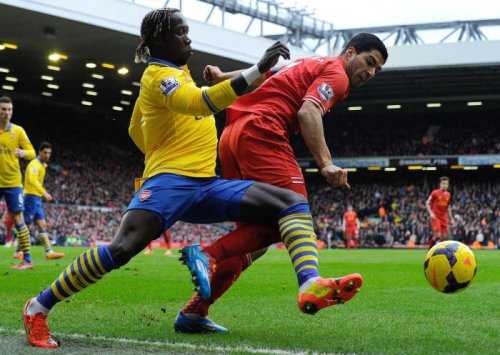 Защитник "Арсенала" Бакари САНЬЯ в борьбе за мяч с нападающим "Ливерпуля" Луисом СУАРЕСОМ. Фото AFP Через восемь дней после энфилдского разгрома "Арсенал" примет "Ливерпуль" в Лондоне в матче 1/8 финала Кубка Англии. "Канониры" имеют прекрасный шанс реабилитироваться за обидное поражение в премьер-лиге, но победа в этом поединке еще больше уплотнит и без того непростой весенний график команды Арсена Венгера.
