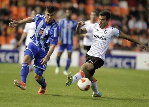 Вчера. Валенсия. Стадион "Месталья". "Валенсия" - "Динамо" - 0:0. Защитник Александар ДРАГОВИЧ не позволил развернуться в атаке Эдуардо ВАРГАСУ. Однако этого оказалось мало… Фото: Reuters Валенсия - Динамо - 0:0