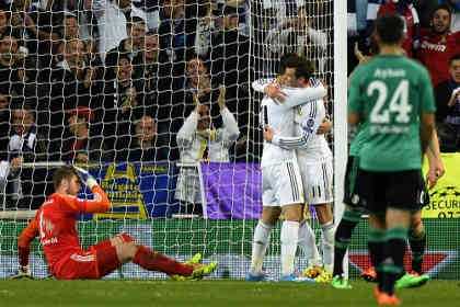В ответных матчах 1/8 финала, состоявшихся вечером во вторник, 18 марта, «Реал» обыграл немецкий «Шальке» со счетом 3:1. Два гола за «Реал забил Криштиану Роналду (21-я и 74-я минуты), ворота «Шальке» также поразил Альваро Мората на 75-й минуте. У «Шальке» гол на свой счет записал Тим Хоогланд (31-я минута). По итогам двух матчей в 1/8 финала Лиги чемпионов счет во встречах «Реала» и «Шальке» — 9:2.<