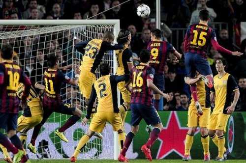В концовке тайма инициатива практически безраздельно принадлежала хозяевам, они владели мячом 65% игрового времени. Месси со "второго этажа" проверил реакцию Тибо Куртуа, а Неймар со средней дистанции пробил чуть выше створа. В добавленное время огрызнулся и "Атлетико". Вилья выстрелил в угол - Хосе Мануэль Пинто, дублер травмированного Виктора Вальдеса, в прыжке нейтрализовал угрозу.