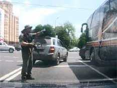 На видео видно, как за автобусом едет легковушка. На одном из перекрестков с авто выходит вооруженный автоматом боевик.