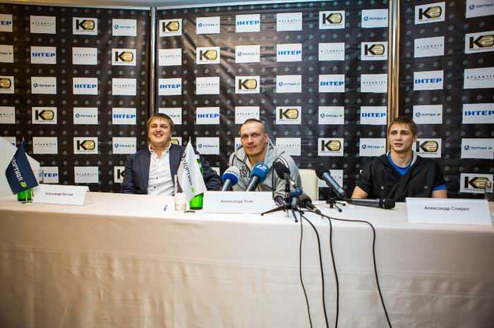 Предлагаем вашему вниманию полную видеозапись вчерашней пресс-конференции с участием двух непобежденных боксеров "K2 Promotions" - Олимпийского чемпиона-2012 в тяжелом весе Александра Усика (3-0, 3 КО) и подающего надежды "первосредневеса" Александра Спирко (16-0, 8 КО).