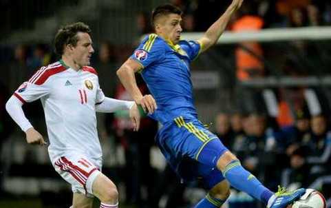 Сборная Украины забила два гола сборной Беларуси и победила в матче отбора на Евро-2016. Первый тайм завершился ничьей. Во втором периоде после подачи Е.Коноплянки Мартынович коленом отправил мяч в свои ворота.
