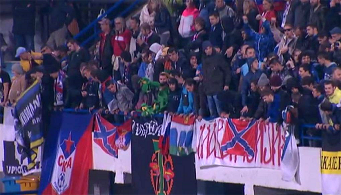 Поведение черногорских болельщиков во время матча Черногория-Россия спровоцировал флаг вымышленной республики. Оказывается, российские болельщики вывесили на трибунах флаг так называемой «Новороссии».