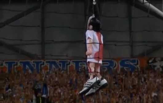 Во время матча чемпионата Франции по футболу между «Марселем» и «Лионом» фанаты марсельского клуба вывесили на стадионе чучело полузащитника «Лиона» Матье Вальбуэна. Напомним, ранее Вальбуэна играл за «Марсель».