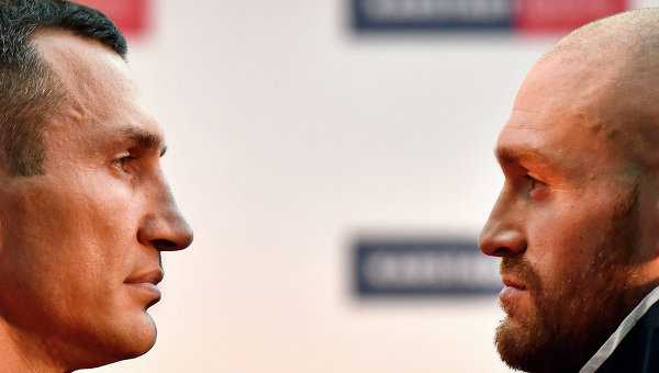 На взвешивании Тайсон Фьюри оказался почти на полкилограмма тяжелее Владимира Кличко.