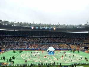 С 22:00 по киевскому времени на стадионе также начался матч-открытие между сборными Франции и Румынии.