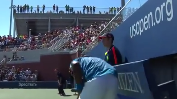 На US Open электронное табло, которое фиксирует время матча, рухнуло на французского теннисиста Гаэля Монфиса.