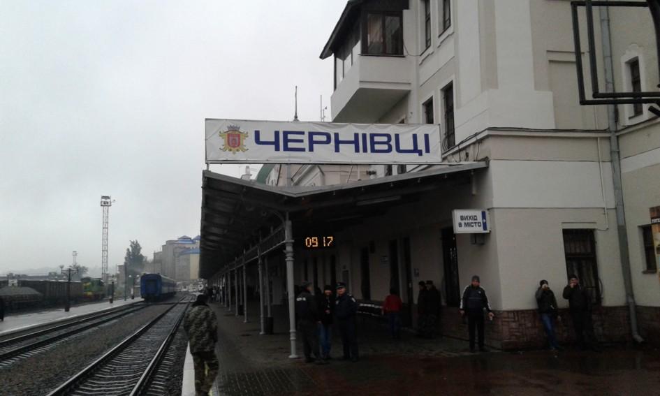 Поезд единения «Труханівська січ» прибыл в Черновцы 26 октября. Этим дождливым, но теплым утром нас встречали представители местного и студенческого самоуправления. Прямо на вокзале горожане растянули большой 25-метровый флаг. На каждый юбилейный год независимости Украины его увеличивают на пять метров.