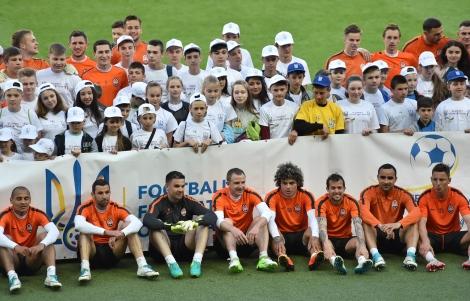Сегодня же маленькие гости харьковской арены аплодисментами поддерживали действия игроков «Шахтера» на футбольном поле. Улыбками дети встретили футболистов и после тренировки, приняв участие в фото - и автограф сессии с игроками и тренерским штабом донецкой команды.