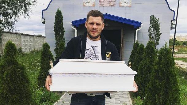Боксер поделился своим горем, опубликовав на своей странице в социальной сети грустную фотографию, на которой он держит маленький гроб.