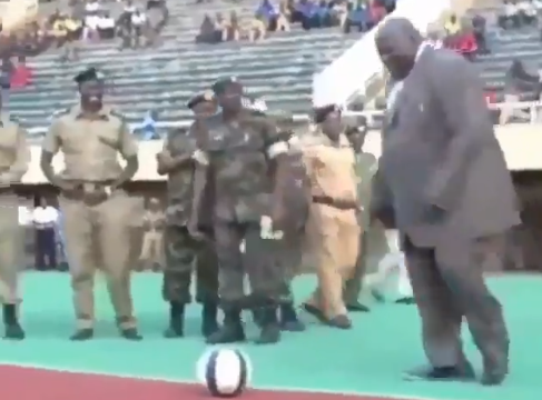 Il vice-premier ugandese Moses Ali dà così il calcio d'inizio del campionato. #Uganda pic.twitter.com/INc7uLOP0j